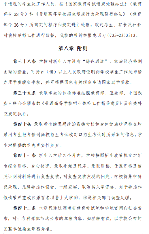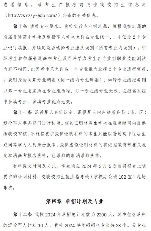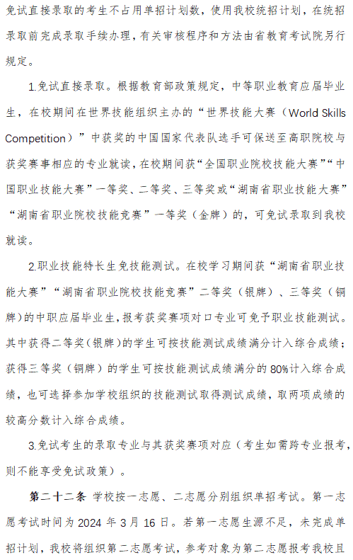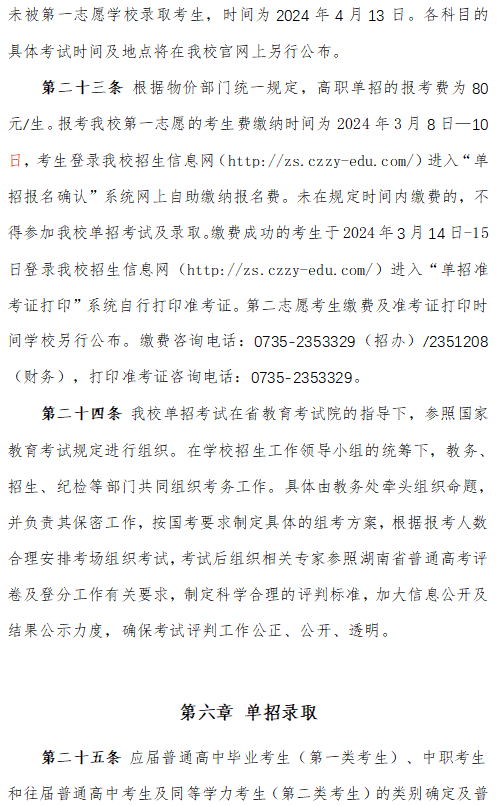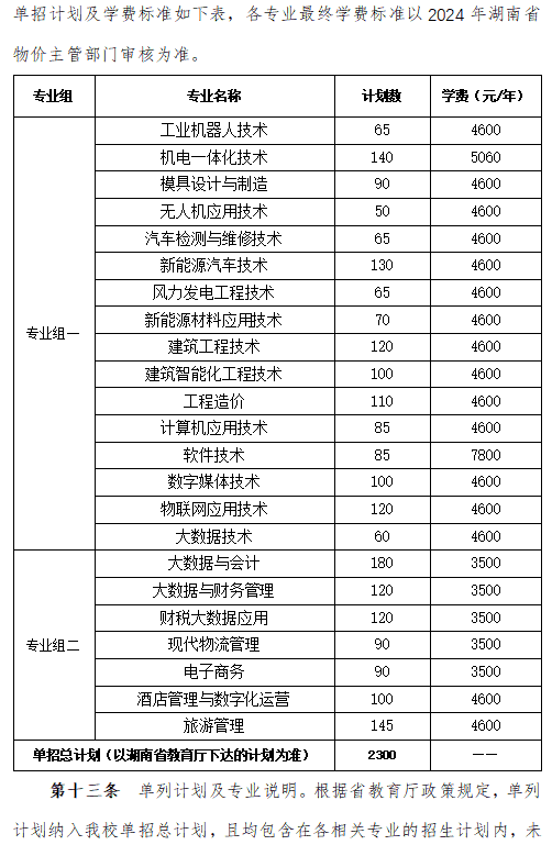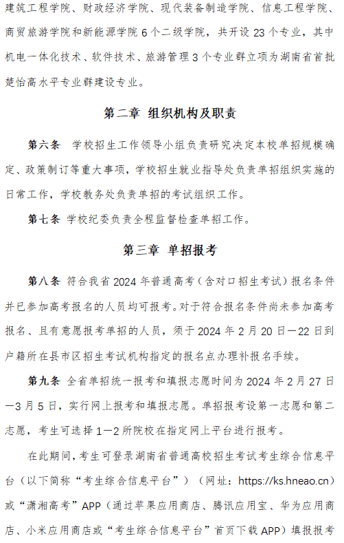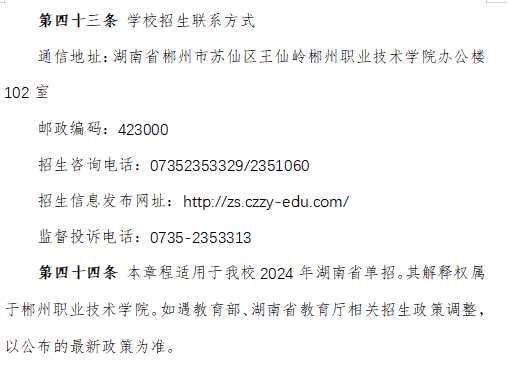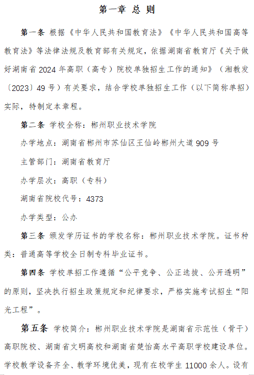 郴州职业技术学院2024高职单招章程